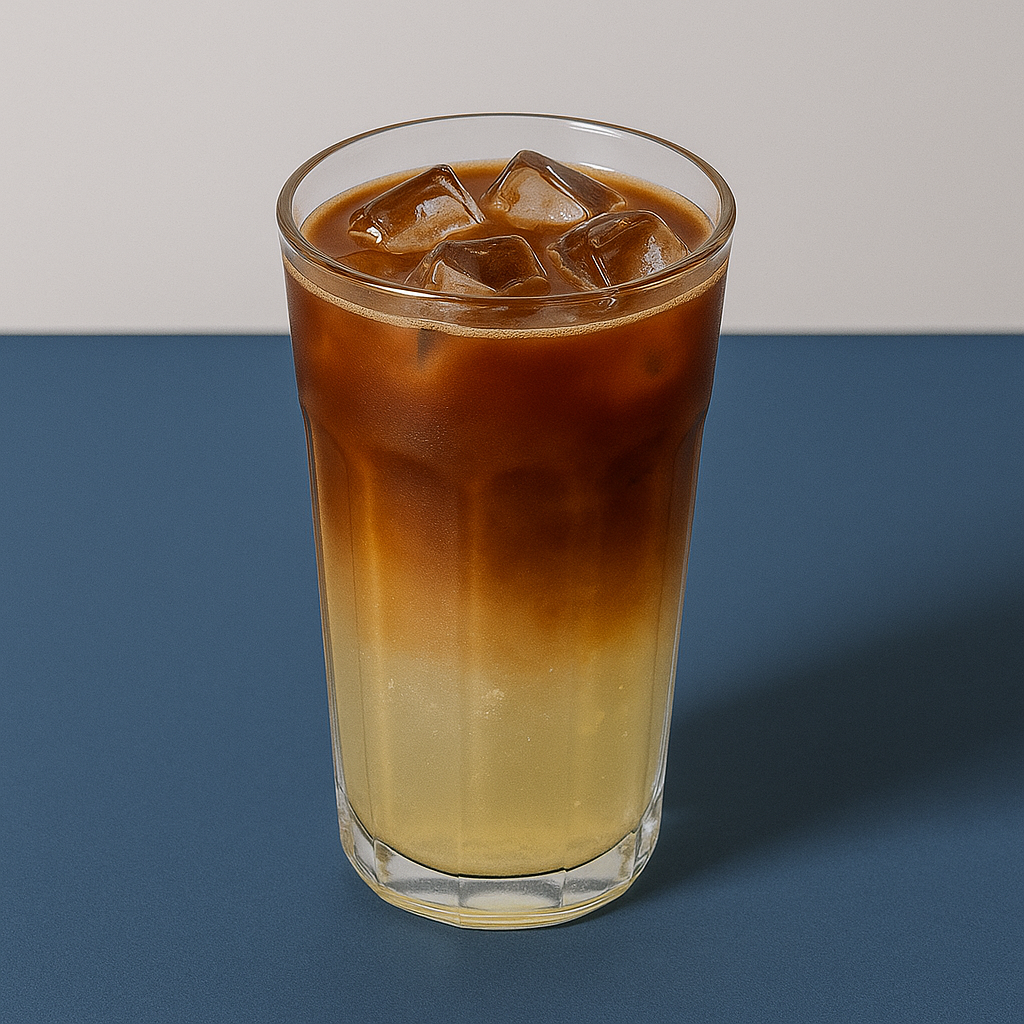 ۳۶۰ میلی لیتر، یک شات اسپرسو ۷۰% روبوستا، ۳۰% عربیکا، اضافه شده به آب سرد، یخ