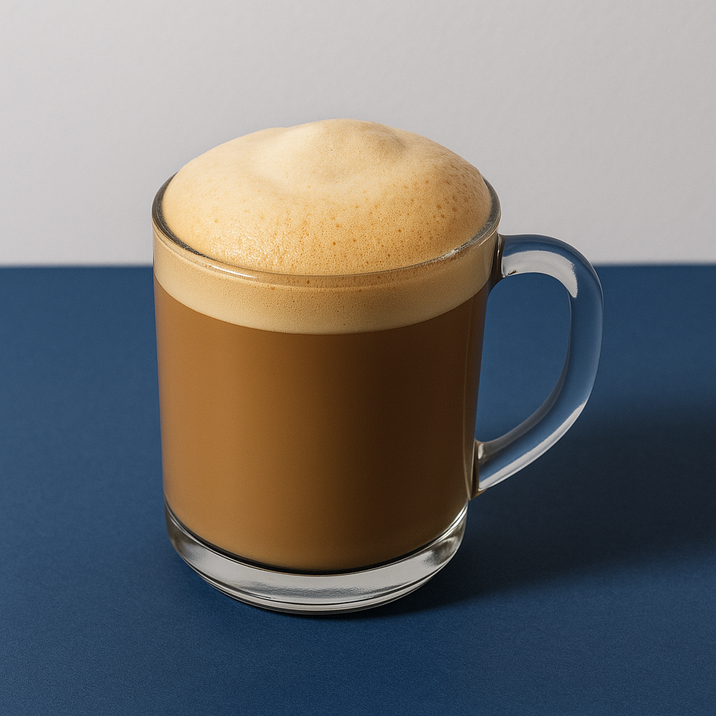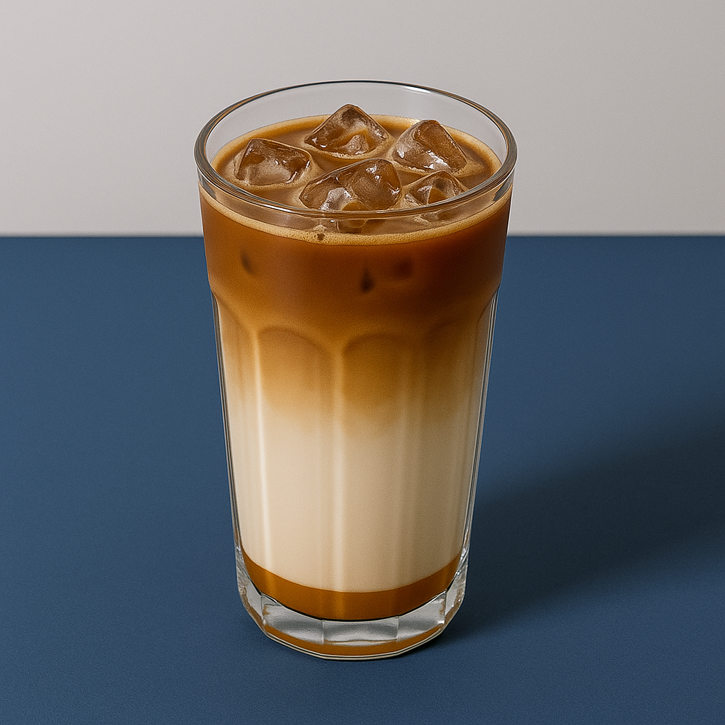 ۳۶۰ میلی لیتر، شیر،یک شات اسپرسو ۷۰% روبوستا، ۰% عربیکا، یخ