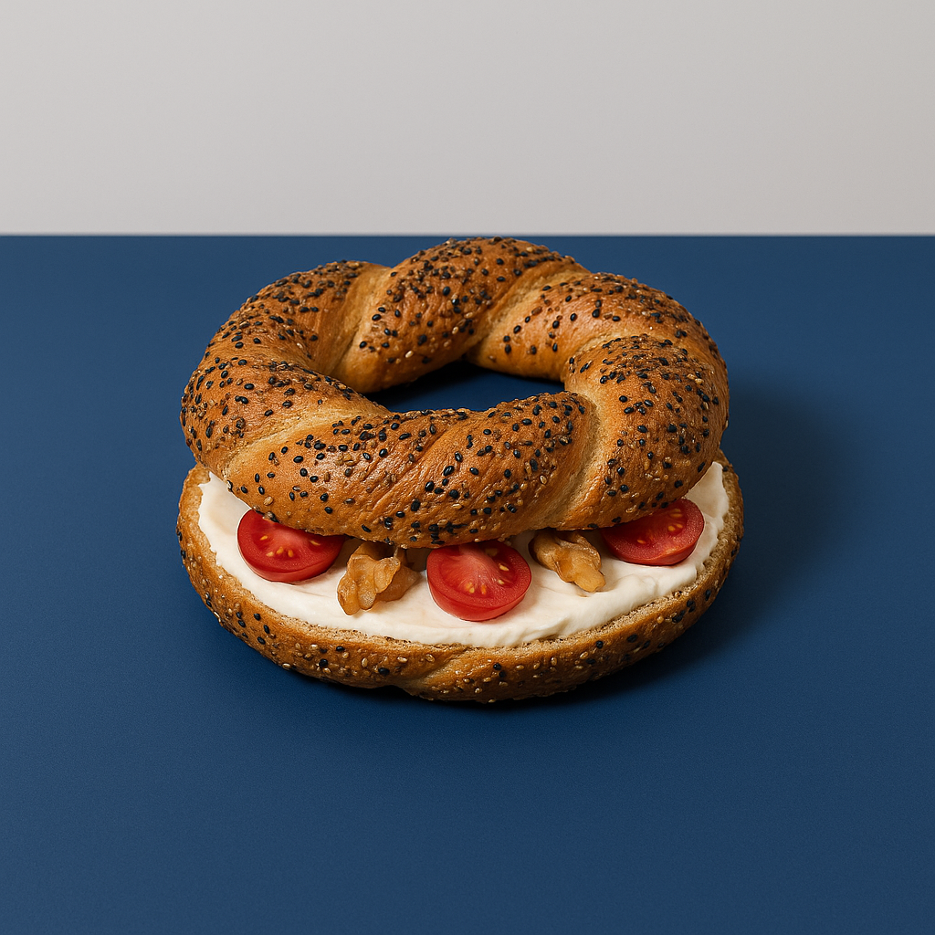 نان سیمیت، پنیر لبنه، گردو، گوجه گیلاسی